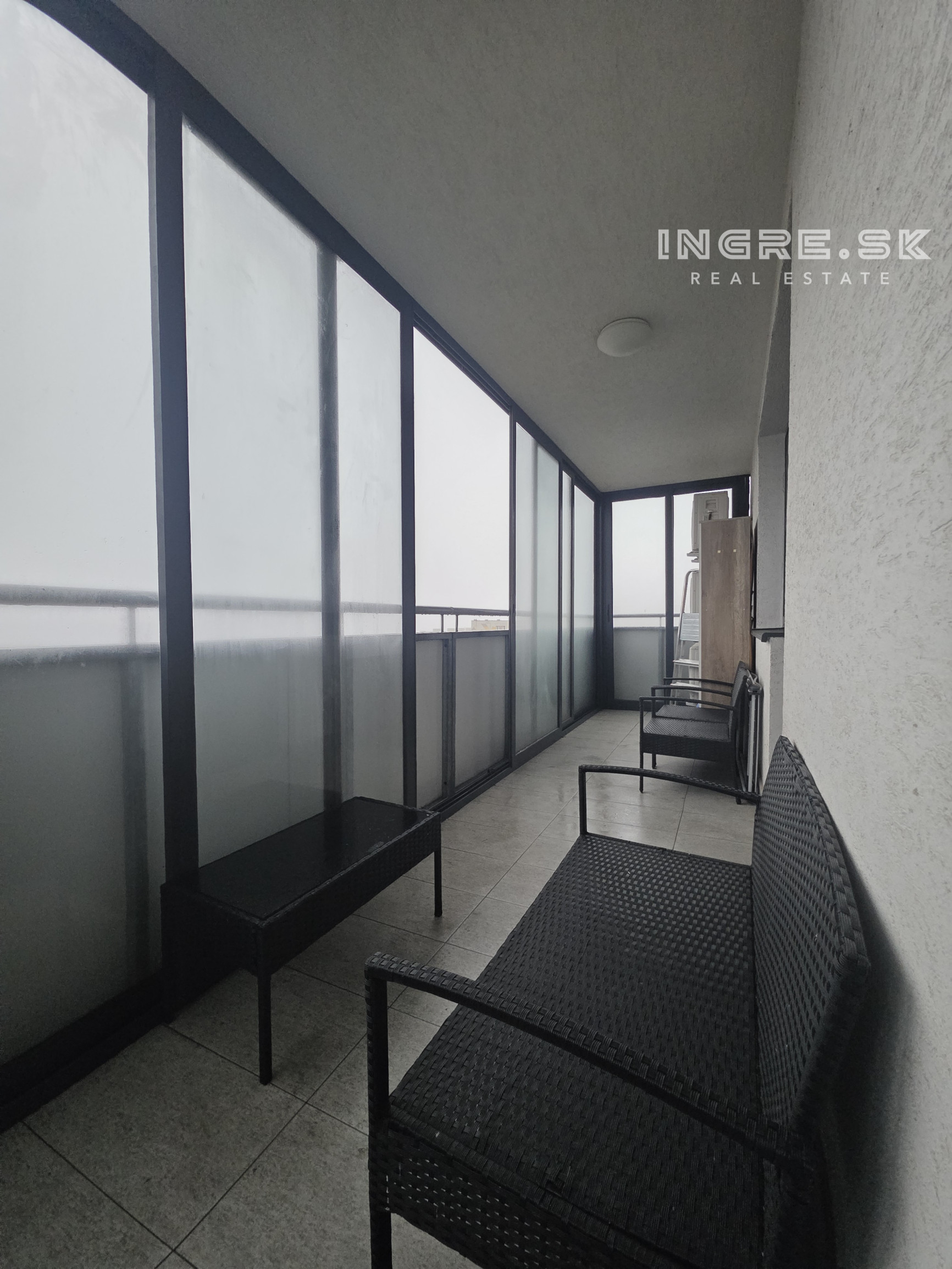 Výstup na loggiu je z dvoch izieb, loggia je kompletne zasklená moderným systémom a otvárateľná.