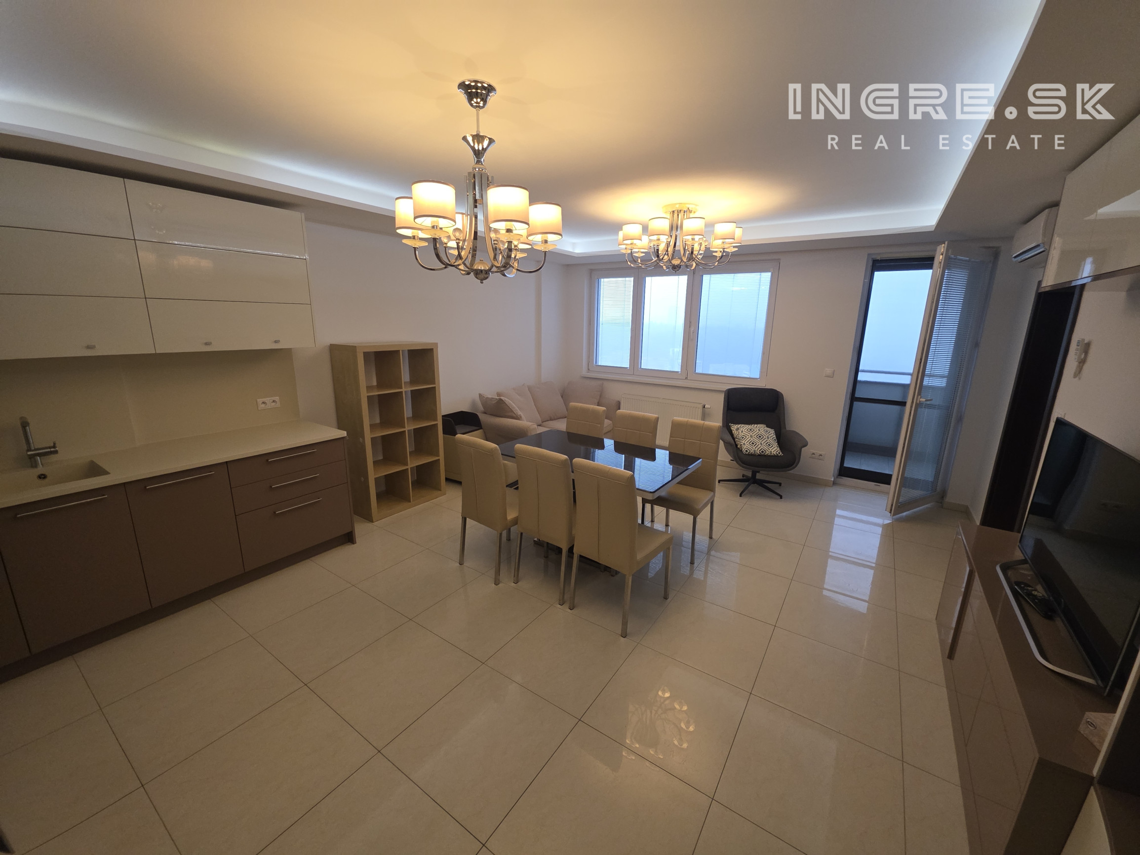 4 izbový byt s veľkou loggiou sa prenajíma kompletne a moderne zariadený spolu s dvomi parkovacími miestami v podzemnej garáži.