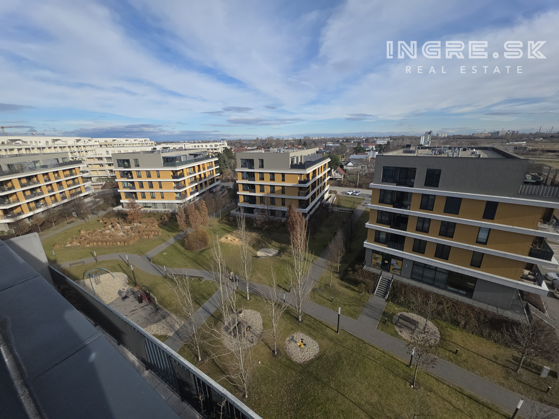 Realitná kancelária - Ingre.sk ponúka na predaj 4-izbový penthouse 86,54 m² s veľkorysou terasou 93 m² a 2 podzemnými parkovaniami – Bratislava Ružinov, projekt Nový Ružinov, Bajkalská ulica.
