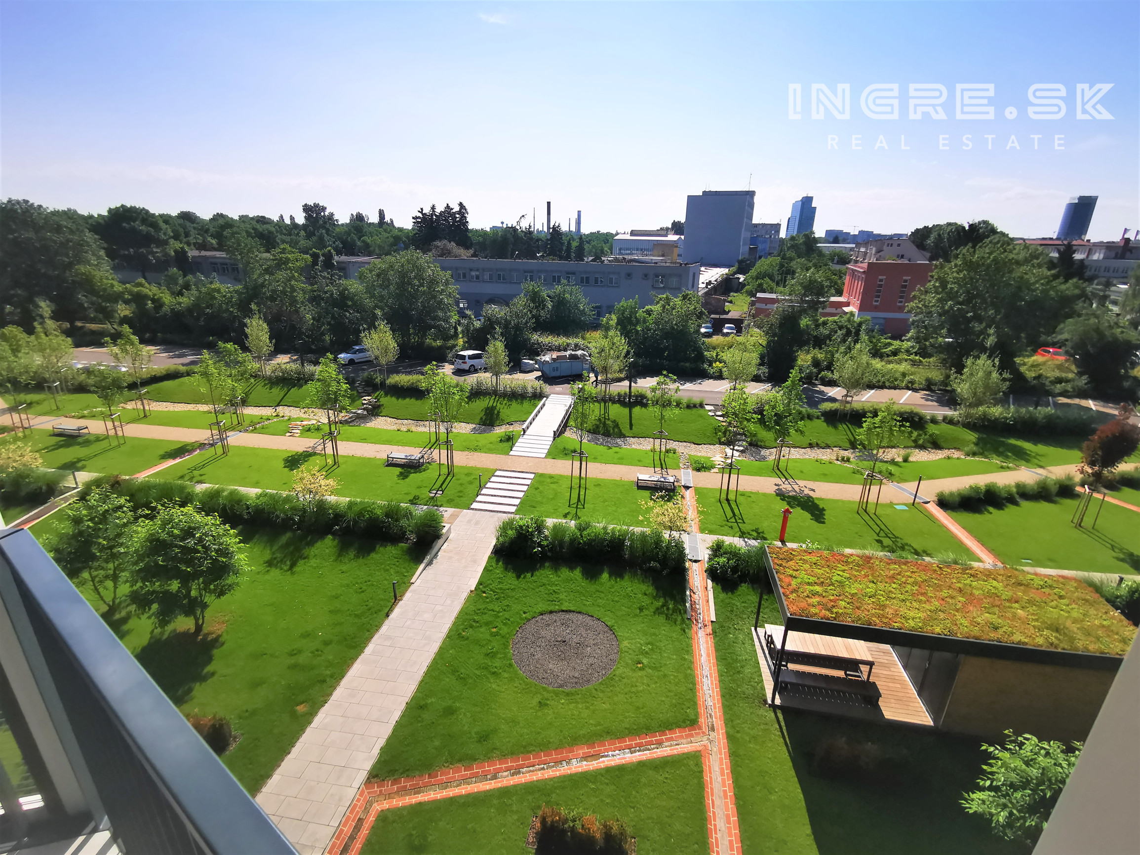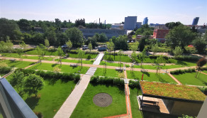 Bytový dom Guthaus ponúka zelenú oddychovú zónu, outdoorové ihrisko, a zdieľaný altánok na posedenie a nedeľnú grilovačku.