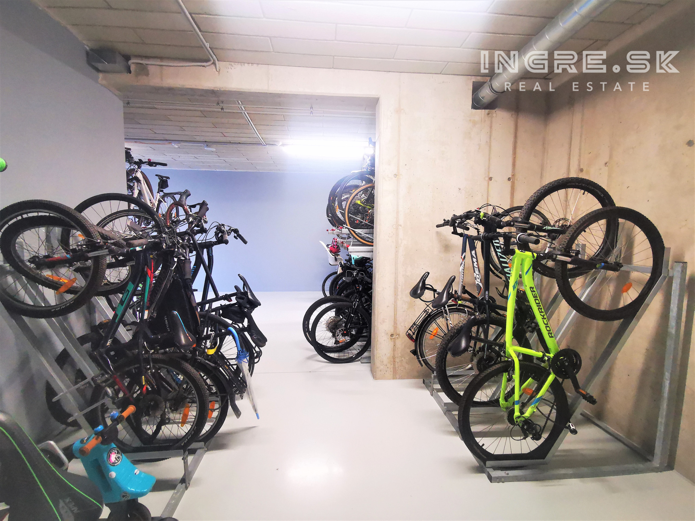 V rámci bytového domu je miestnosť na bicykle, k dispozícii v cene jedno parkovacie miesto v podzemnej garáži.